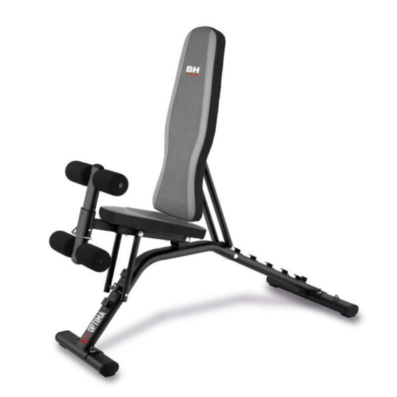 Panca per pesi multifunzione per uso domestico: Optima G320B con schienale, sedile e supporto per le gambe regolabili.