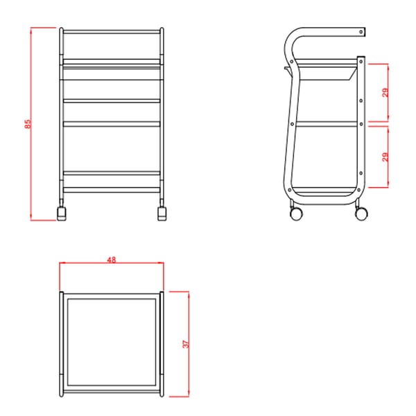 Carrello parte dotato di 3 grandi ripiani in plastica