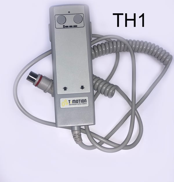 -Controllo tramite pulsante palmare: TH1 (misure 16*5 cm), cavo a spirale, stesso connettore jack a 8 pin.