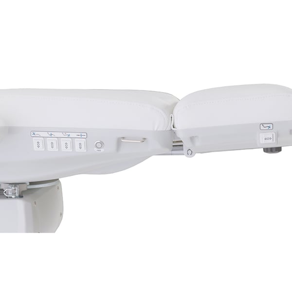 Poltrona barella estetica di fascia alta Tella con riscaldamento: elettrica con quattro motori, rotazione di 90º, braccioli pieghevoli e pulsanti e pedali integrati