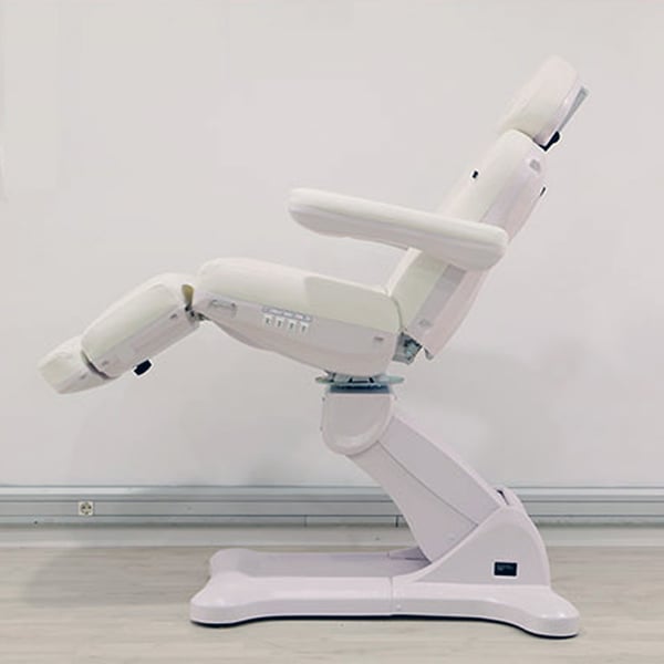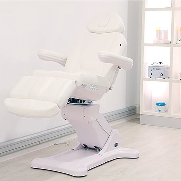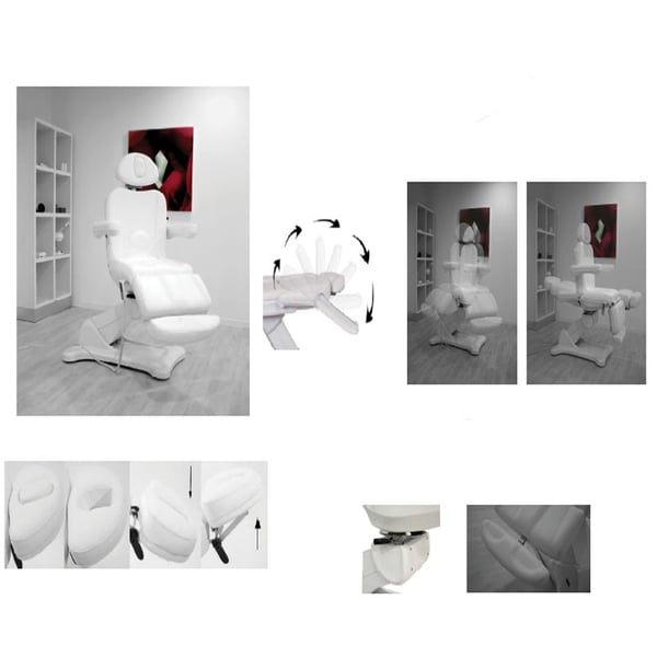 Poltrona barella estetica di fascia alta Tempo: elettrica con quattro motori per controllare l'altezza e l'inclinazione dello schienale e poltrona girevole a 240º con posizione Trendelenburg