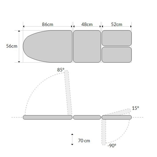 - Gambe: poggiagambe indipendenti elevabili/reclinabili