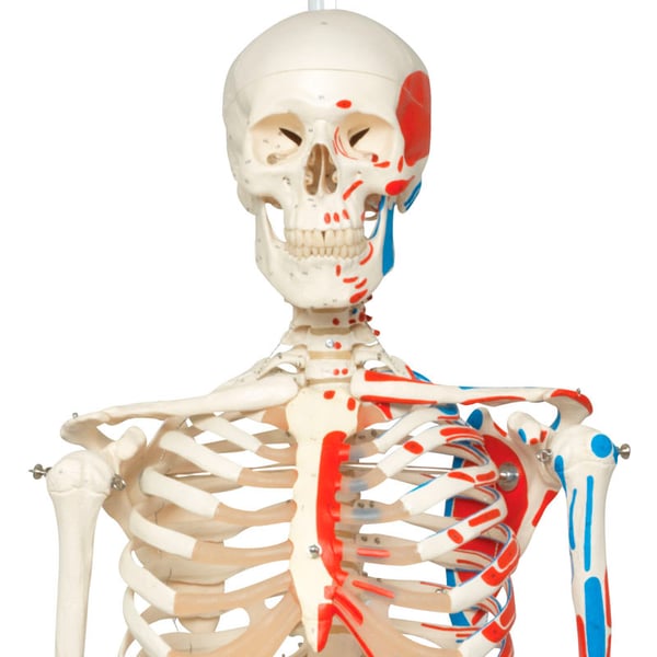 Lo scheletro anatomico Max presenta tutte le componenti di uno scheletro e fornisce anche la rappresentazione dell'interazione strutturale tra ossa e muscoli .