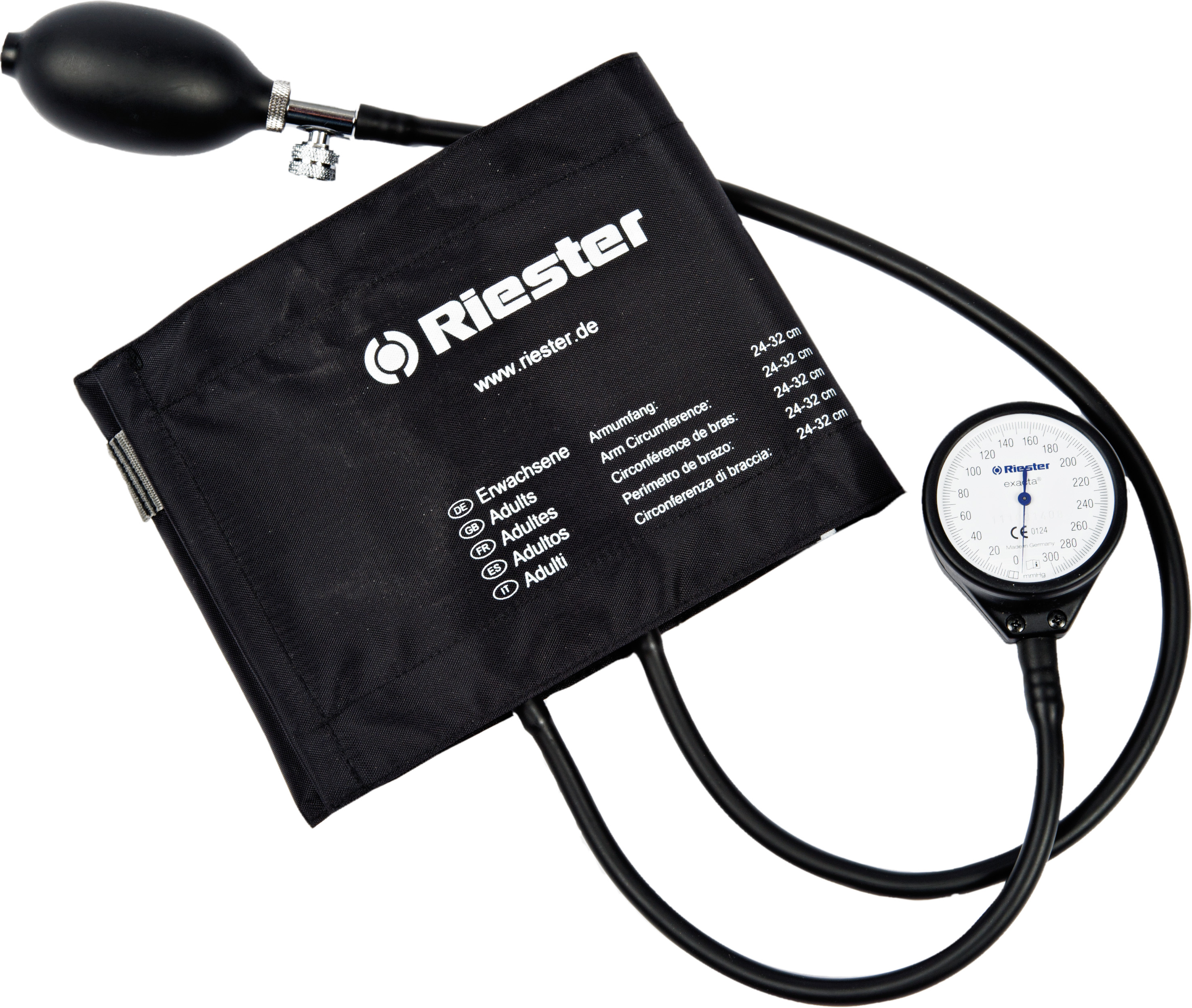 Sfigmomanometro aneroide Riester Exact: con bulbo e manometro separati.