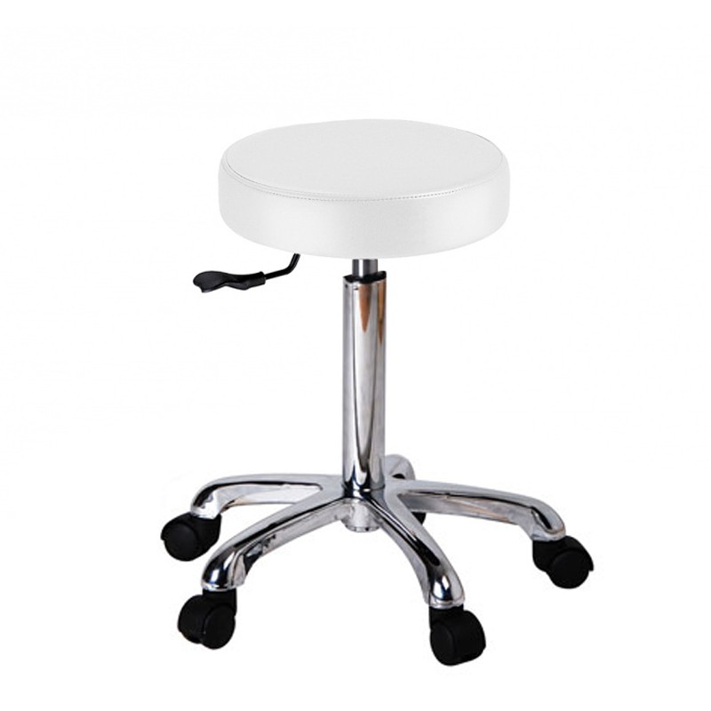 Il modello Fast è uno sgabello pratico che si distingue per il suo design ergonomico attentamente studiato. È dotato di una seduta piatta e circolare, regolabile in altezza tramite un pistone a gas. È rivestito in pregiata pelle PU bianca e ha una base cromata con cinque ruote.