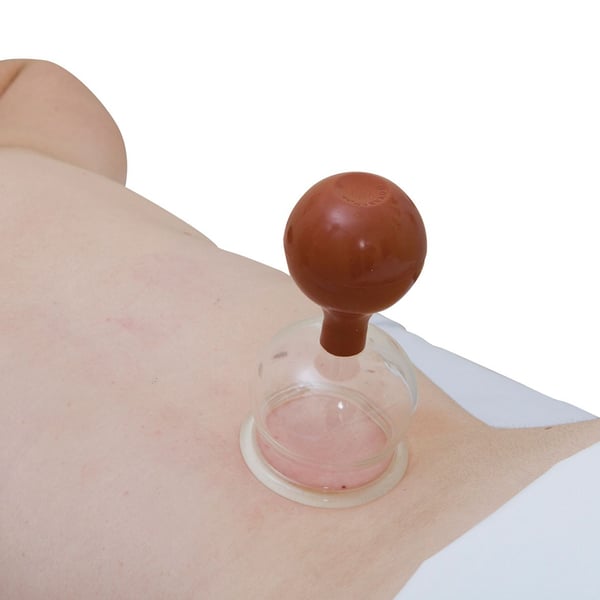 Ventosa in vetro con bulbo di aspirazione in gomma: diametro 3,2 centimetri